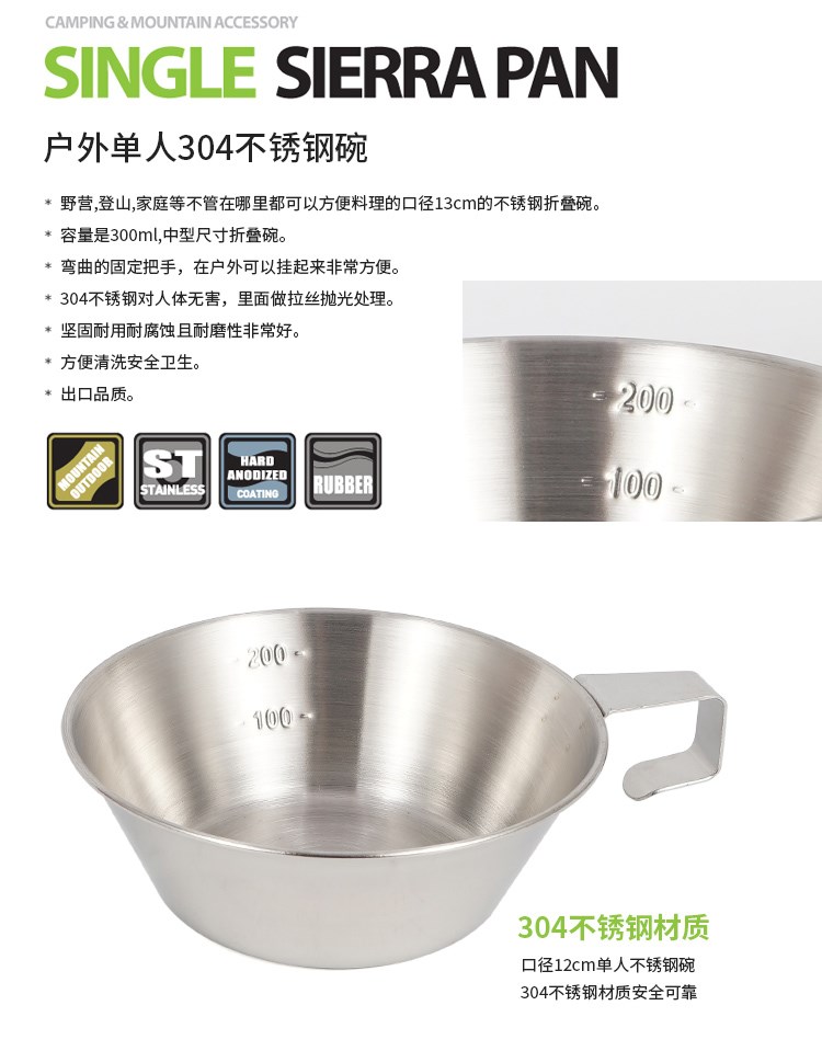 На открытом воздухе 304 из нержавеющей стали лагерь фиксированная чаша