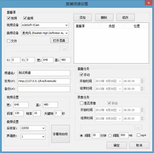 RTMP Multi -Channel Live Broadcast Management поддерживает камеры и файлы для регулярной записи текстовых значков