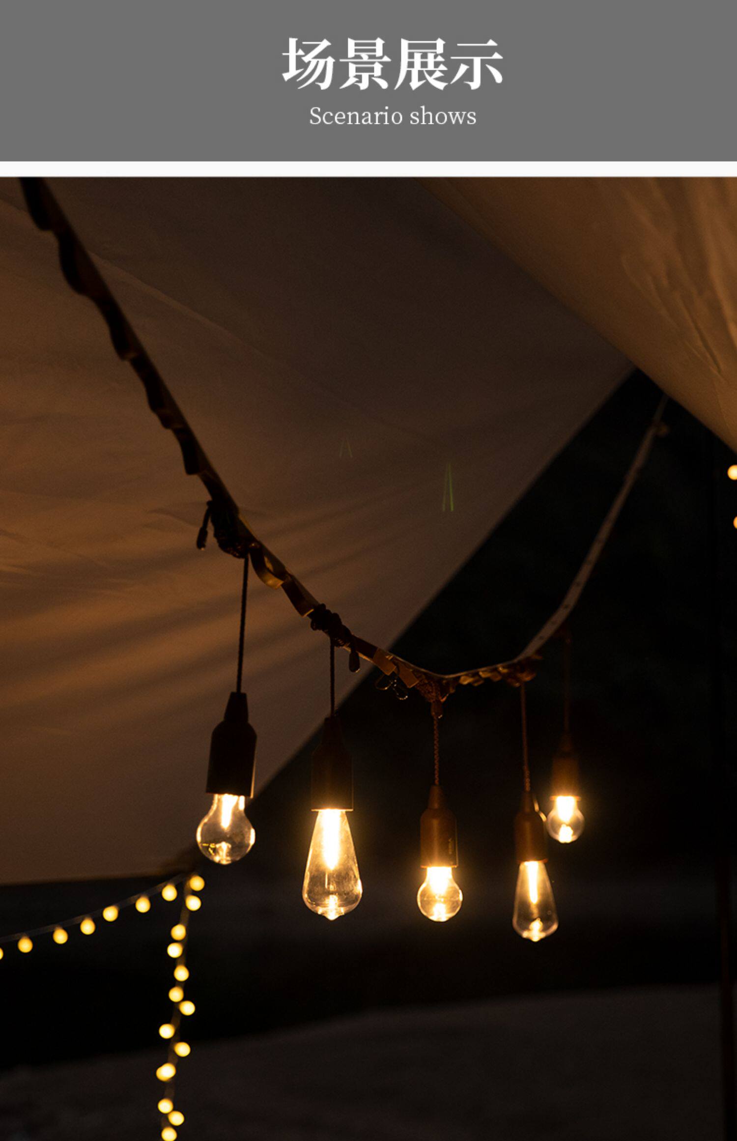 Дорожная палатка для кемпинга со шнуром, светодиодный атмосферный сверхдлинный светильник
