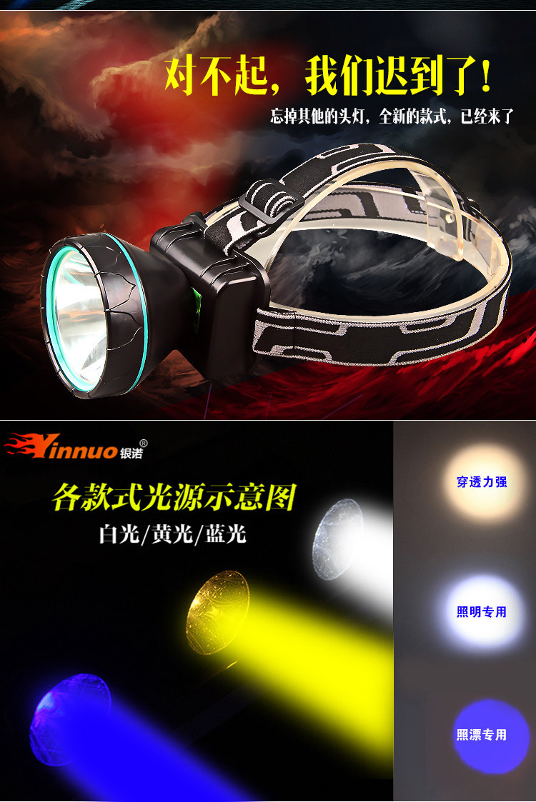 银诺 Светодиодный фонарь, супер яркая дорожная шахтерская лампа для рыбалки