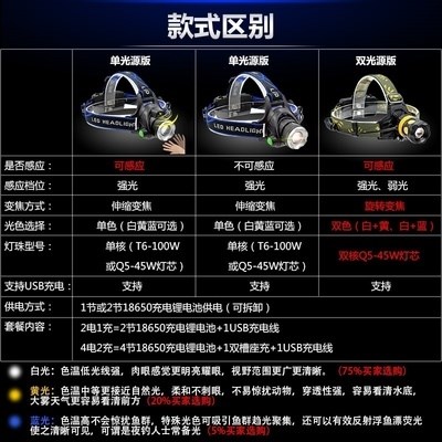 Ночные легкие датчики фар рыбацкие рыбацкие рыбацкие рыбацкие головки в ультра -высокой яркой приманке ночная работа.