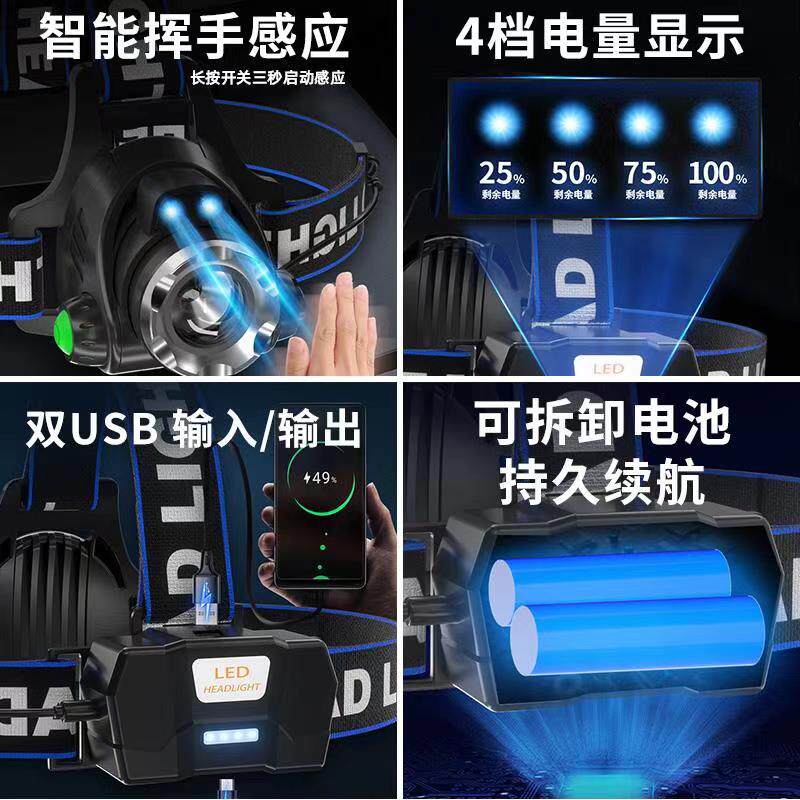 Супер яркий фонарь для рыбалки, индукционная сверхлегкая маленькая шахтерская лампа