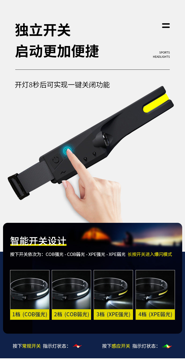 | Цвет: | Стандартная модель: неиндуцированные фары [зарядка USB/3-Gear Fugment/10-20H срока службы батареи] |