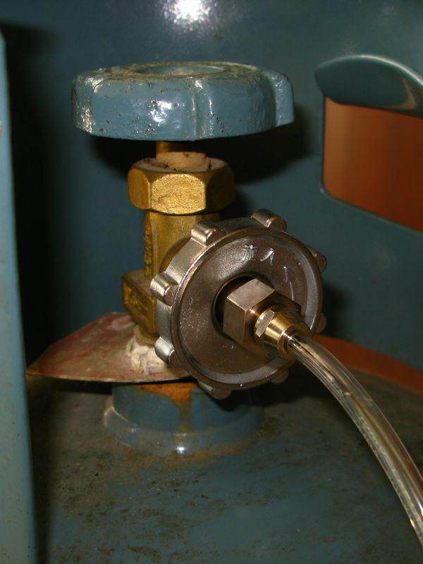 Подключите пустой плоский газовый бак к подключению плоского газа