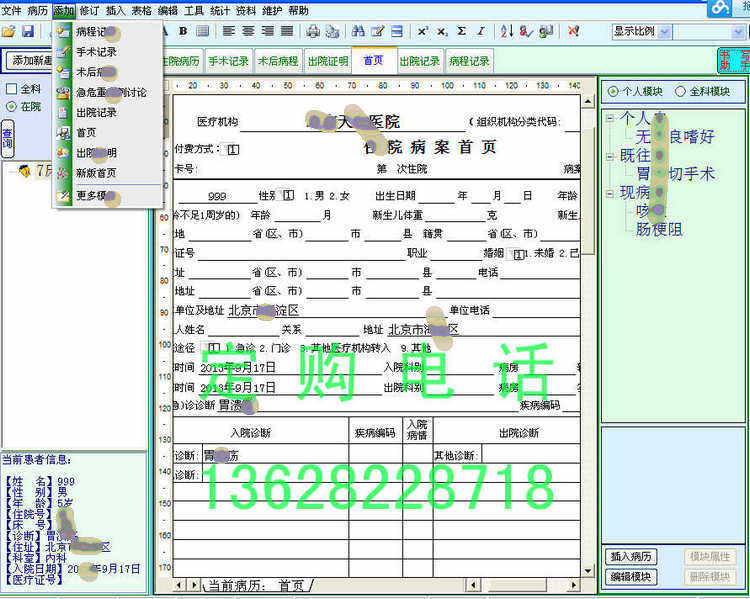 Электронное медицинское программное обеспечение для лечения программного обеспечения для написания программного обеспечения для программного обеспечения Доктор Модуль Заказ+Определение