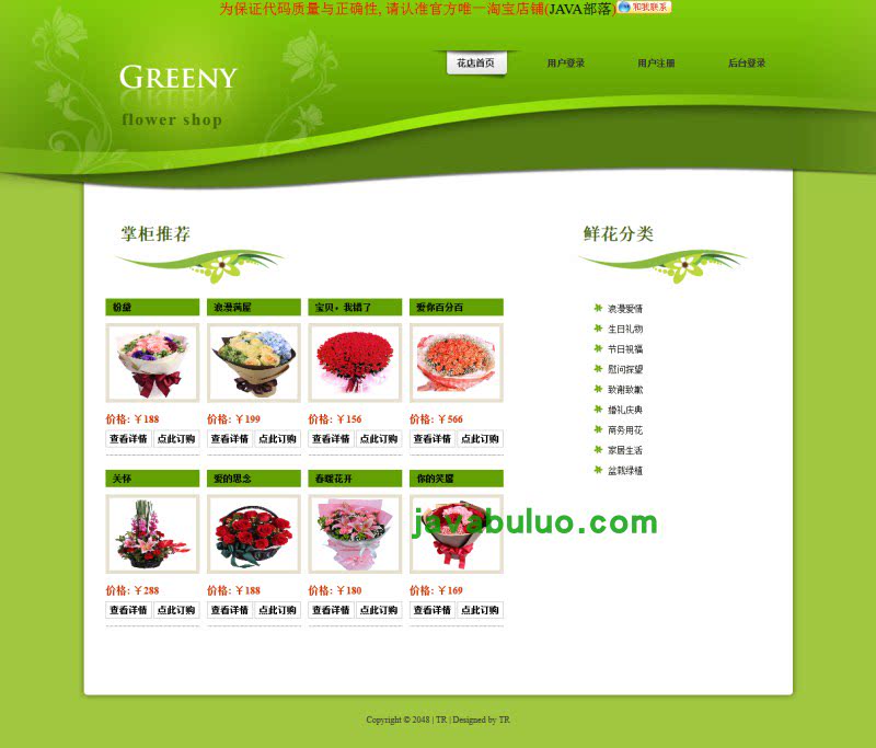 Java Flower Shop Flower Mall System System System System JSP SSH MySQL