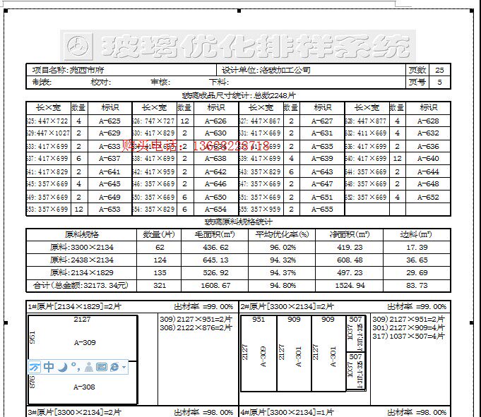 6. Автоматический объем края шлифования. Поскольку стекло из партии A является чистым размером, не существует суммы шлифования. Это программное обеспечение объединяет электронный счетчик, который может автоматически добавлять количество краев измельчения, чтобы избежать искусственных ошибок, вызванных ручной работой.