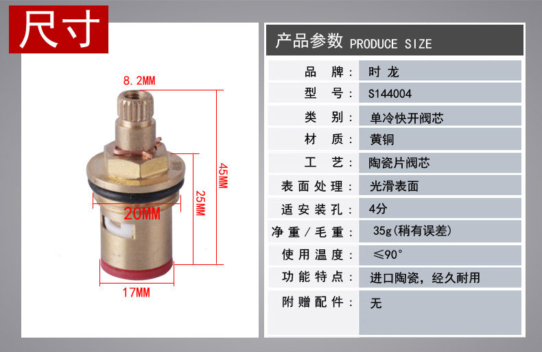 Seloog/时龙 Латунная одинарная охлаждающая керамическая деталь, быстрооткрывающийся кран для стиральной машины, сердечник клапана, керамическая деталь S144004
