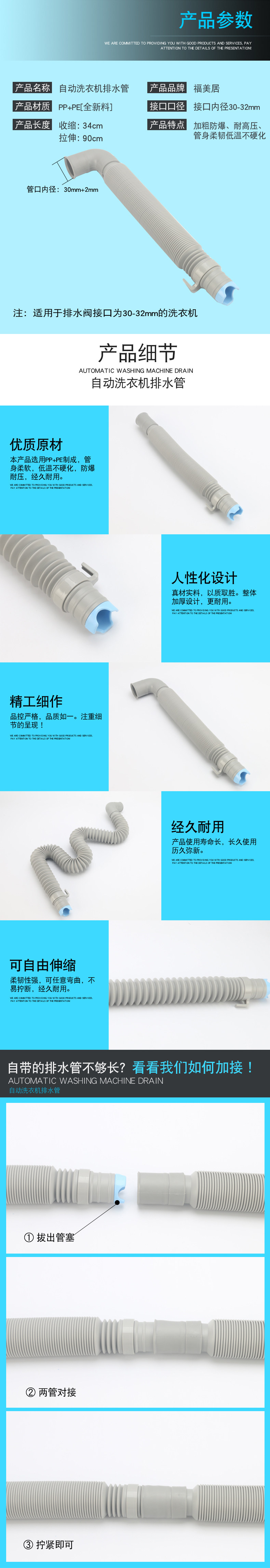Полностью автоматическая стиральная машинка дренажная труба Panasonic LG Samsung Samsung Sanyo Удлиноватая водяная труба и толстая нижняя труба