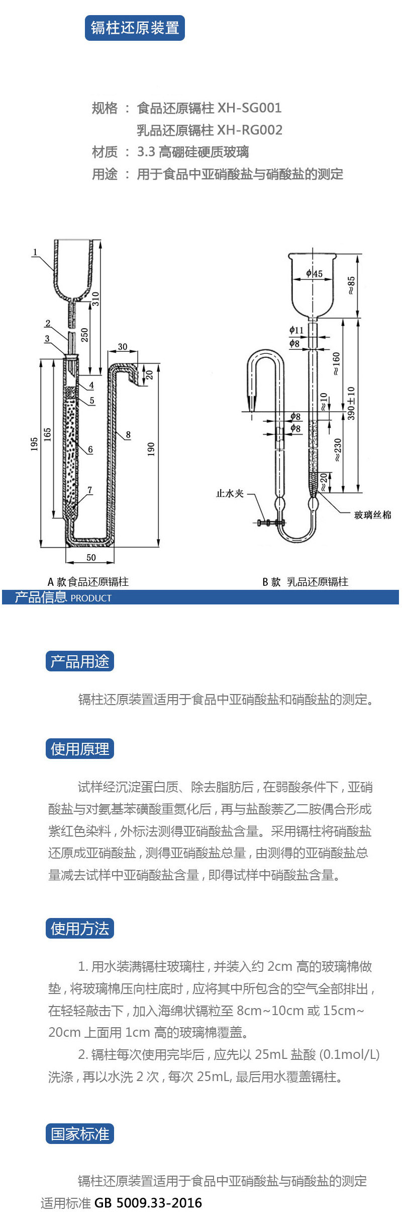Устройство сокращения колонн Caddy Национальное стандартное стандартное метод продуктов питания и молочных продуктов в молочном продукте, чтобы определить определение нитрита и нитрата