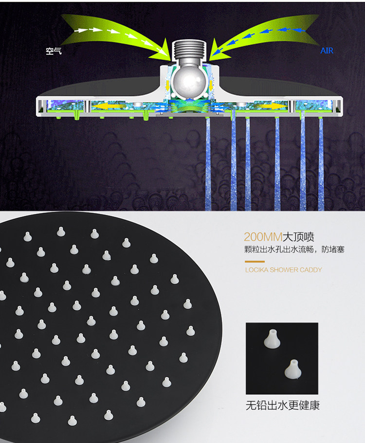 SUS304 из нержавеющей стали черной шоу, держащая верхнюю часть, разбивая потолок, большая большая дагота и купальная головка