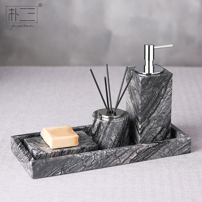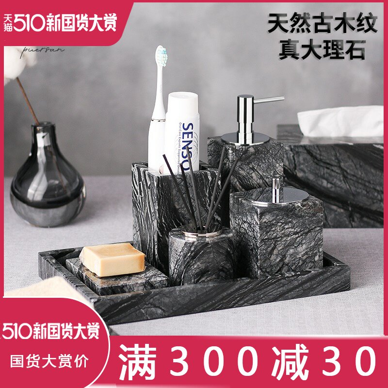 Северная мраморная туалетная чашка установлена пять -кусочками для ванной комнаты туалет и украшение ванной комнаты.