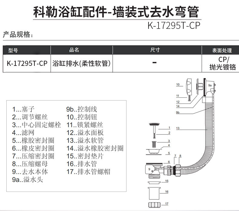 | Цвет: | Дренажная труба ванны K-17295T-CP |