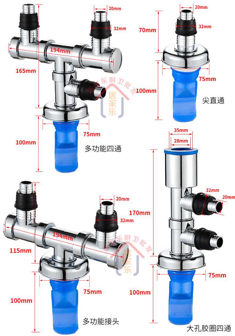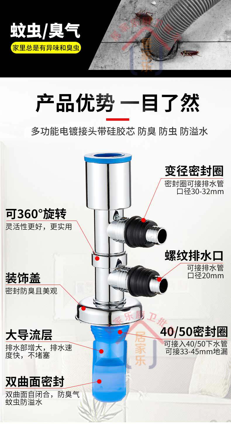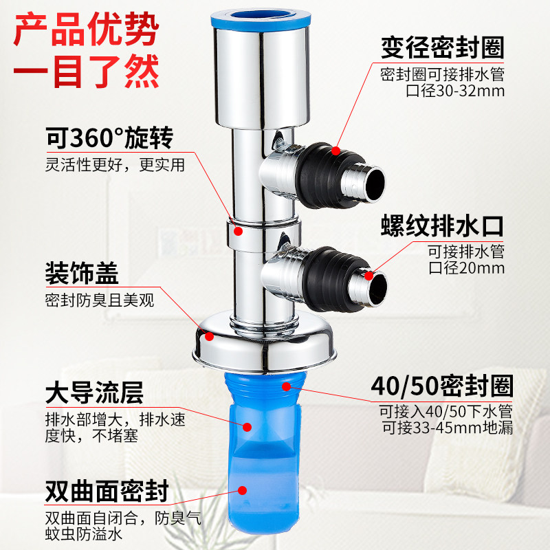 Стиральная машина Нижняя канализационная труба дренажные трубы Секции выделенных суставов, трех -головных двух -в одном, один три -в -тол - -и -анти -диантиодорант против переполнения анти -трупа