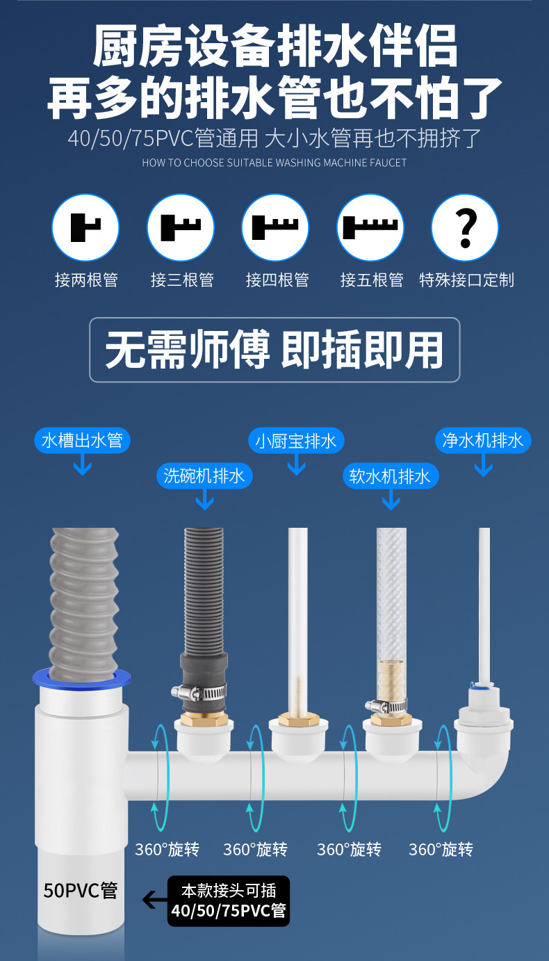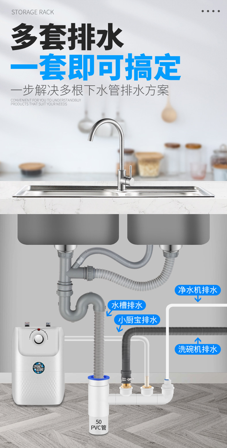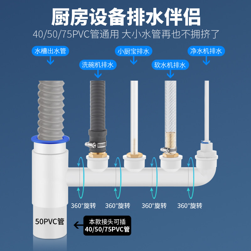 Кухонная посудомоечная машина для очистки водопровода канализационная труба кухня кухонная кухня баоража по стиральной машине Дренажная труба Антиодоризация два -в одном суставах три звенья