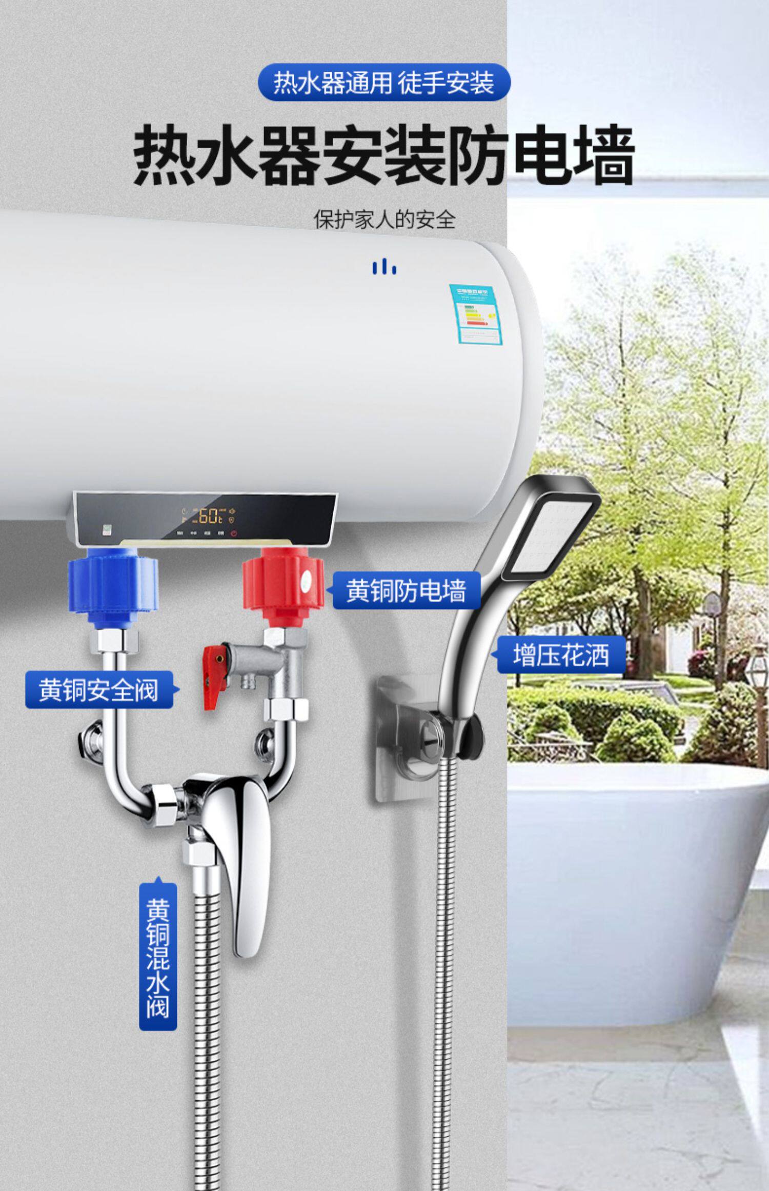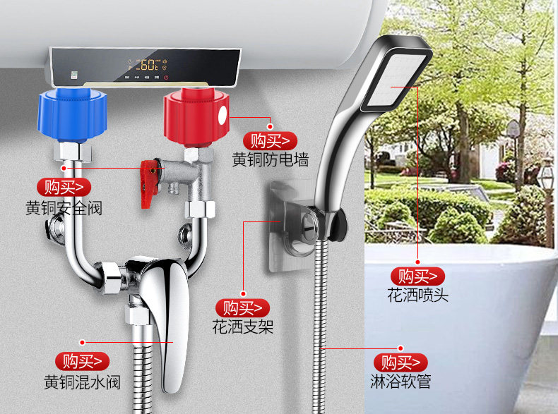 - [Модель толстой обновления] Красная и синяя антиэлектрическая стена ● 2 установка+предохранительный клапан+смешанный клапан+бустерный костюм для душа