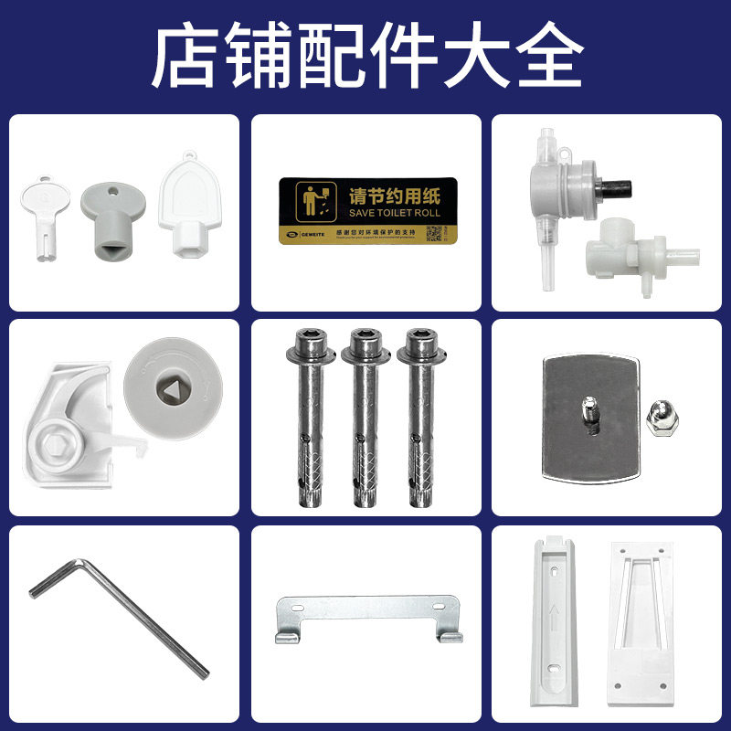 Дозатор для мыла, внутренняя бутылка, напорная головка для жидкости, насадка для шланга, большой рулон, бумажная коробка, ключ, коробка для туалетной бумаги, пластиковый цилиндр замка, аксессуары