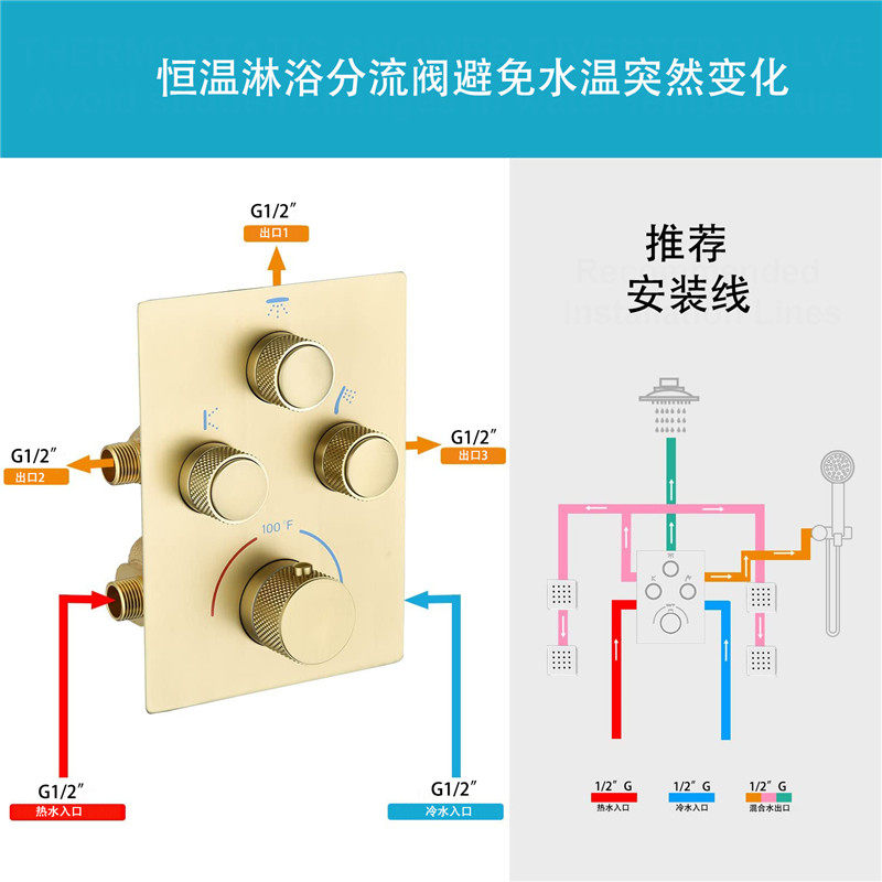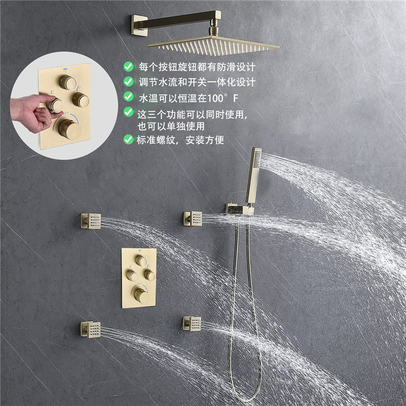 Медный термостатический смеситель Bessie, скрытый переключатель, кнопка клапана, кнопка душа, одновременный контроль подачи воды, контроль потока