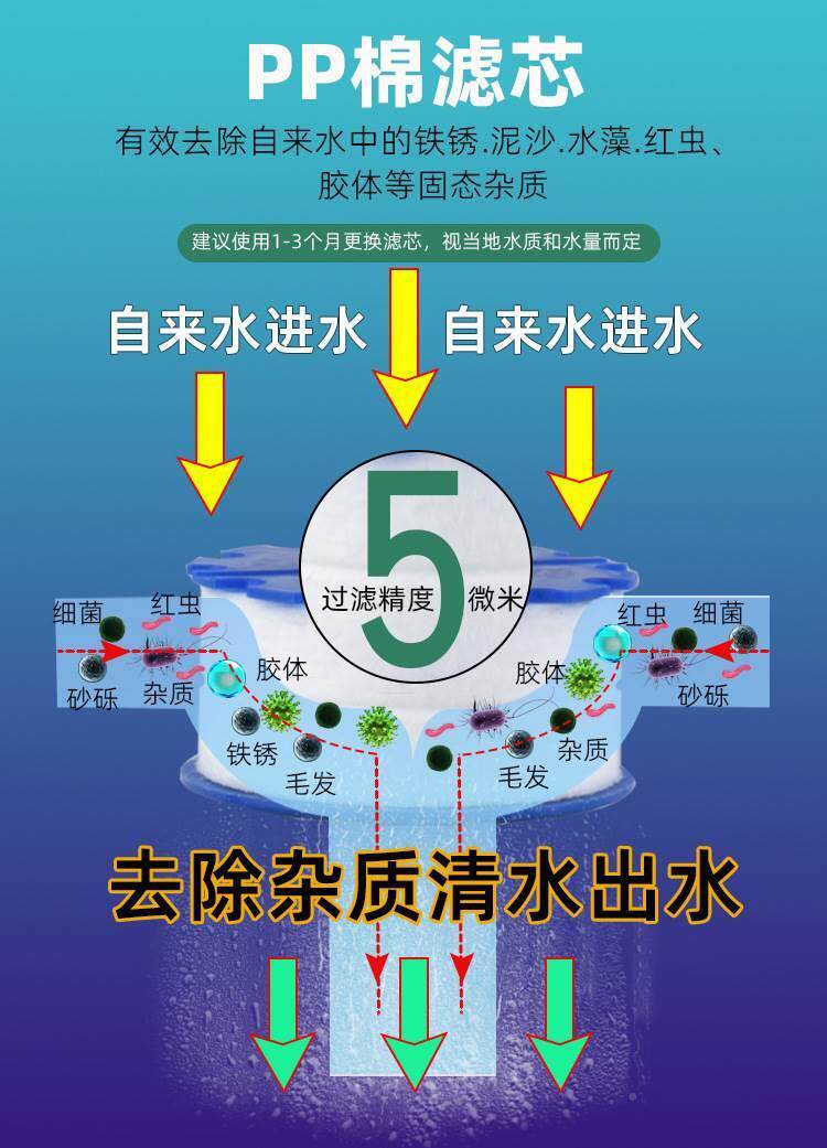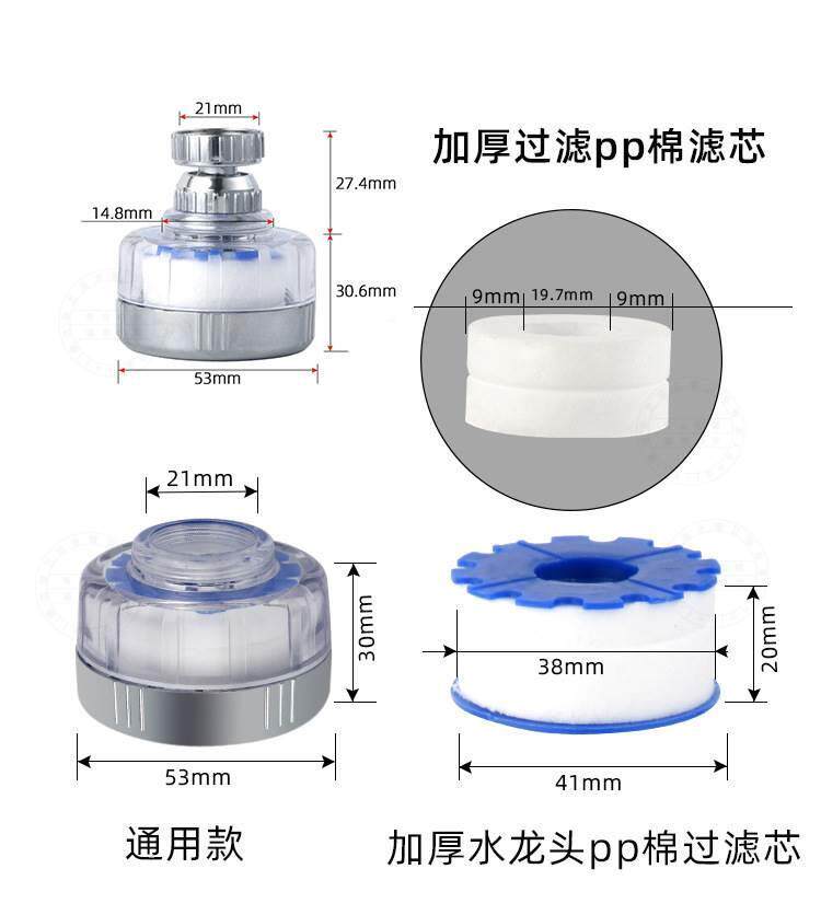 Constchable Water -Водонепроницаемый кухонный смеситель PP хлопковой фильтр может быть снесен для очистителя для очистителя воды для душа.