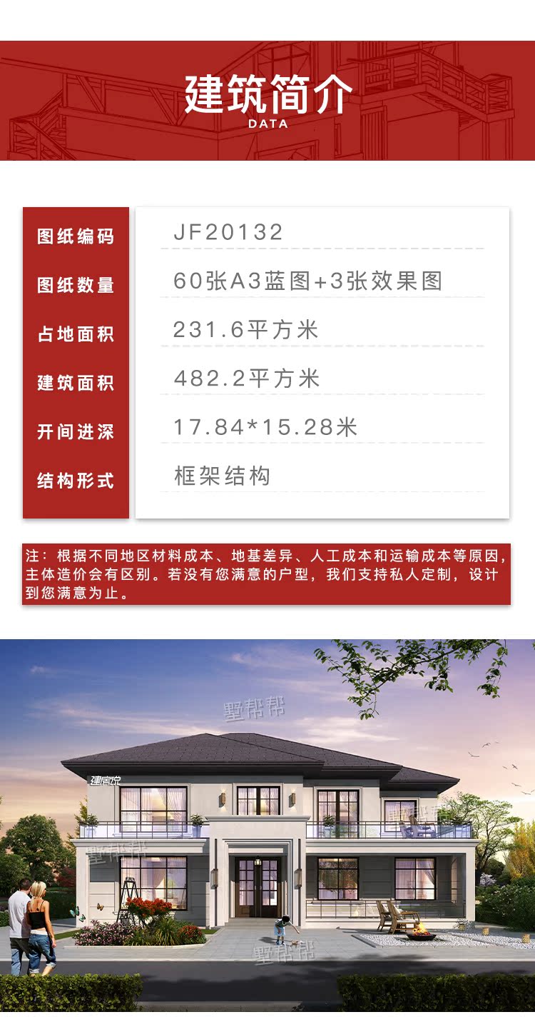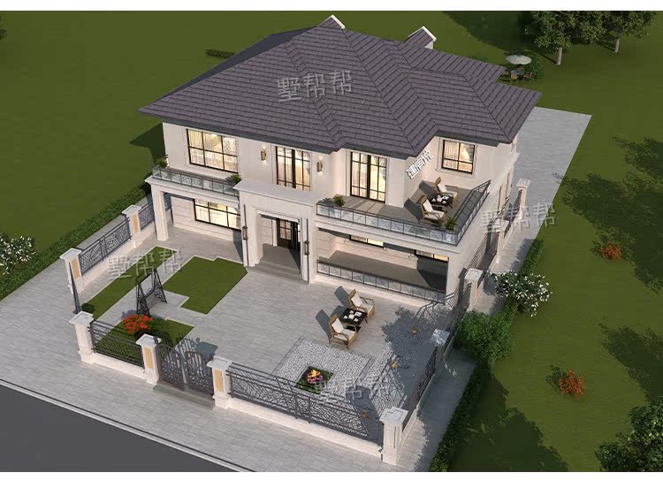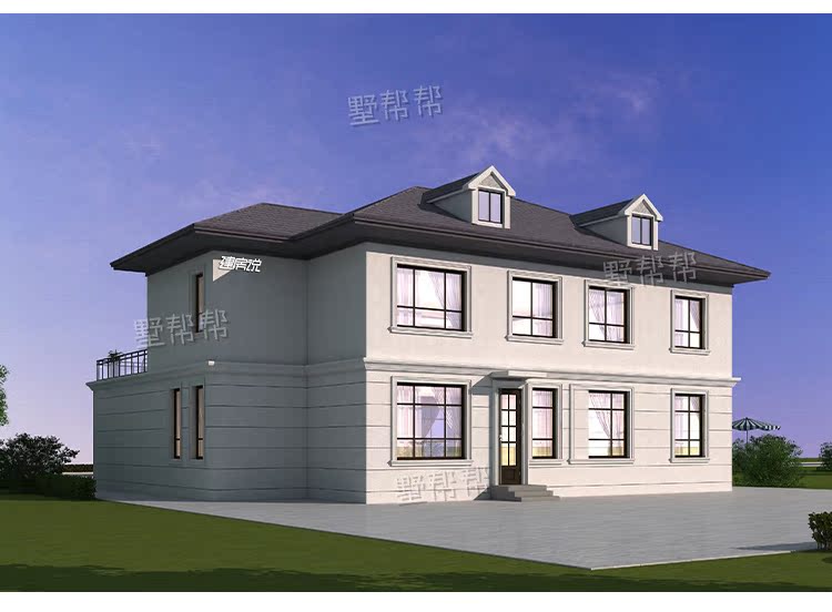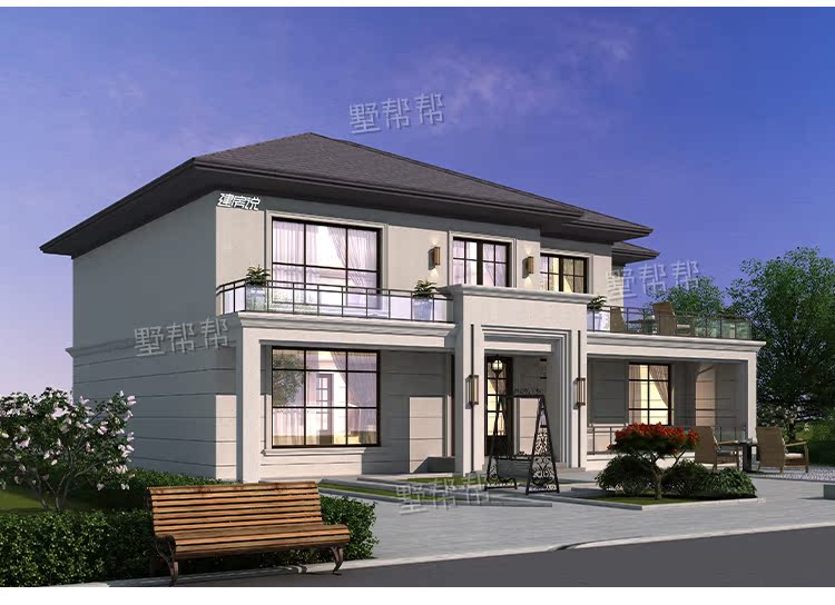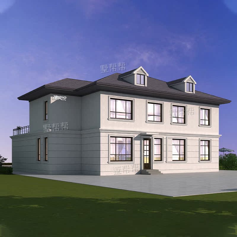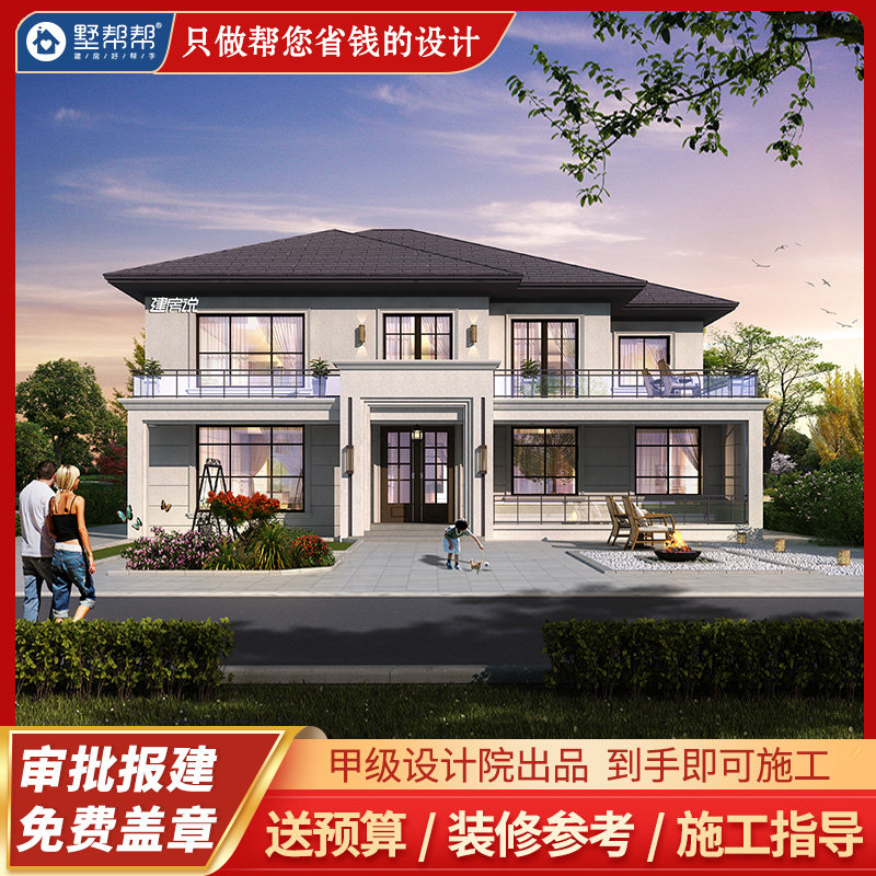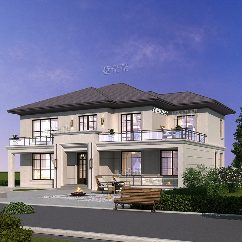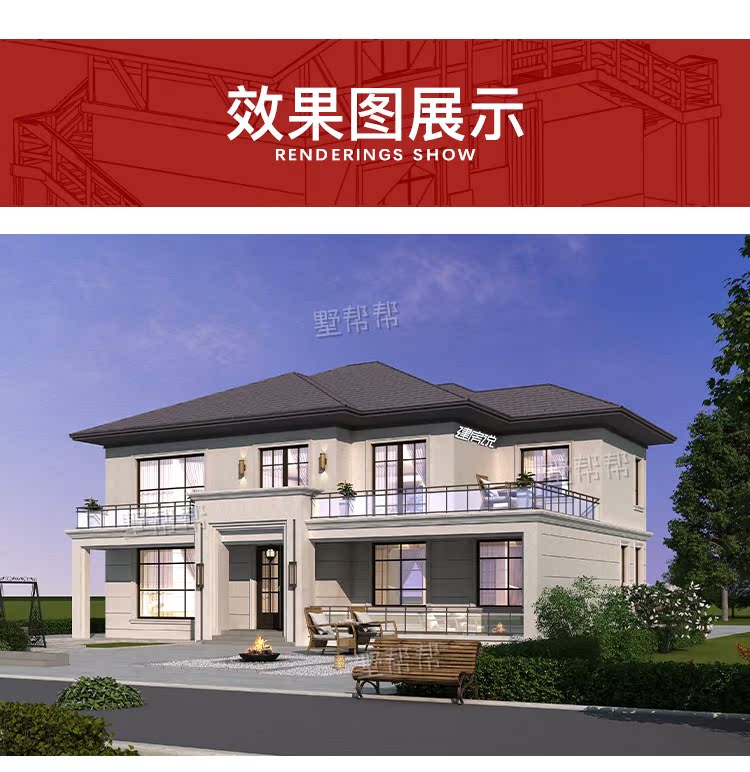 Дизайн -рисунки сельской виллы Двухсторонные дуплексные здания в стиле европейского стиля строительство строительства строительства визуализации полного набора рисунков простые