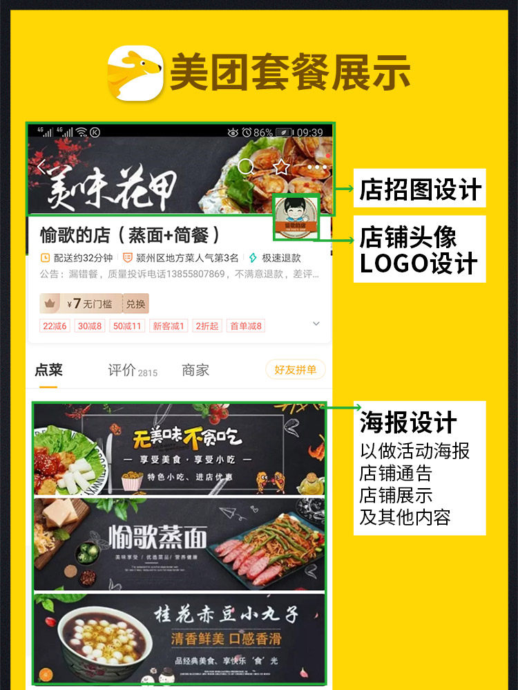 Meituan Takeaway Hungry, магазин украшения ресторана, набор рекрутирования логотип, аватар дизайн блюд и производство