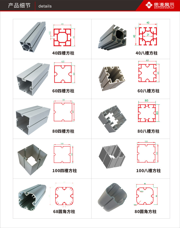 Выставка восьмиугольника, плоский алюминий, 40 квадратных столбов, 60 квадратных столбов,