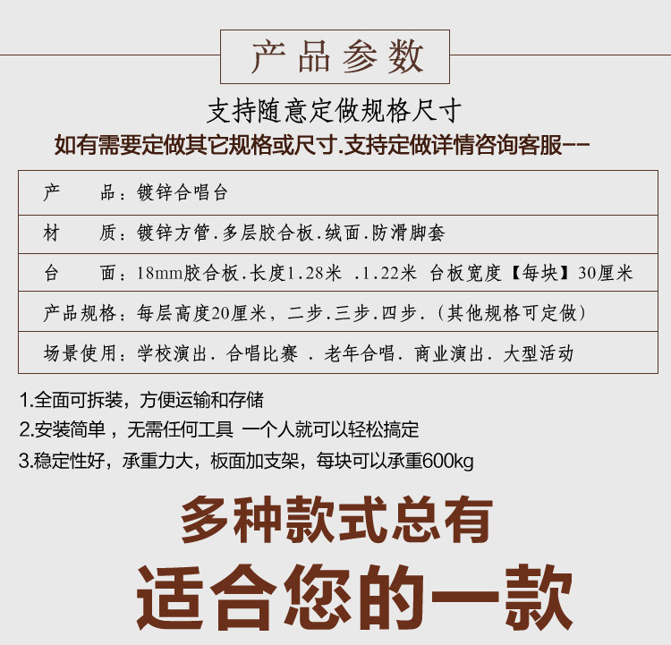 | Цвет: | Обычный хор на втором этаже, Три этажа обычной хорусной платформы, Обычный хор на четырех этажах, Анти -скользящая пластина два слоя, Три слоя не солипной пластины, Четыре слоя не солипной пластины, Анти -скользящая пластина плюс перебросить два слоя, Не -скользящая пластина и сбить с толку три слоя, Анти -скользящая пластина плюс перебросить четыре слоя, Добавить два -слой ковра, Добавить три слоя ковров, Четыре этажа ковра, Добавьте ковер и добавьте щит два слоя, Три слоя добавления ковра и добавления щита, Добавить коврик с четырьмя слоями, Припев, Таблица сплавного сплава алюминиевого сплава, Индивидуальная съемка, Три этажа телескопического стола с твердым деревом, Добавить слой ковра, Платформа хора с твердым деревом на три этажа |