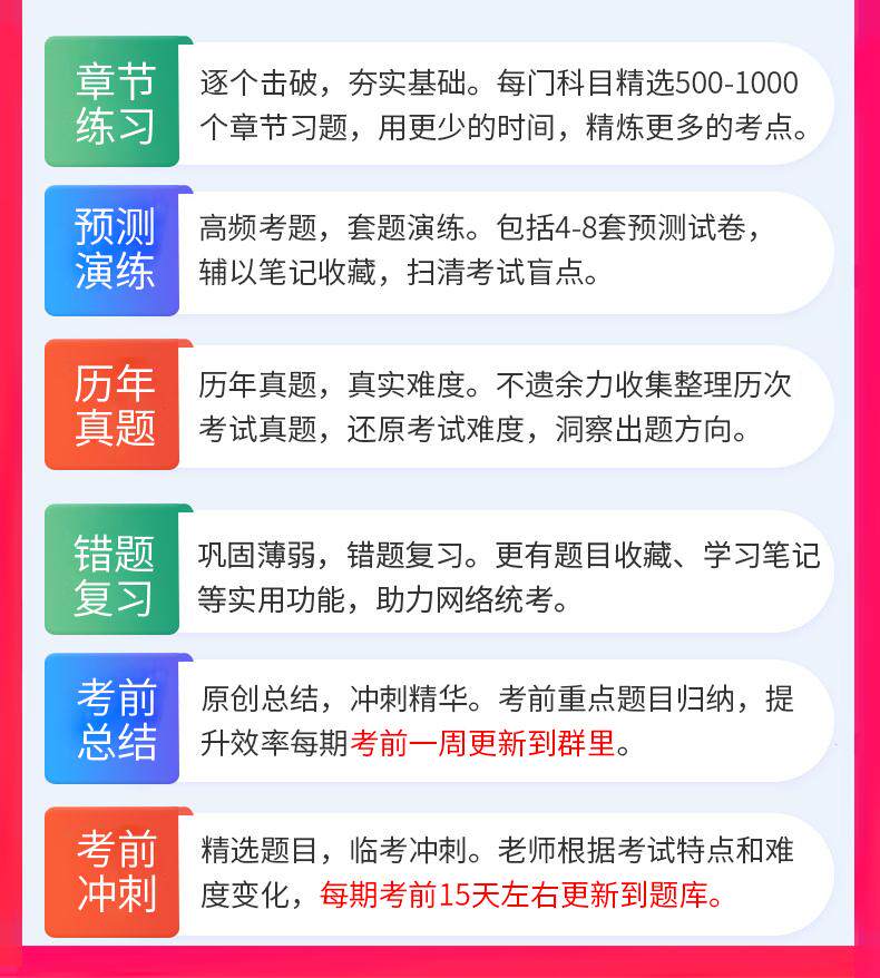 | Тип: | Вопросной пакет = интеллектуальный банк вопросов + предварительный тест спринт, Пакет «Вопрос для чистки зубов» + набор упражнений из бумаги, Изысканный пакет лекций = изысканный пакет вопросов + изысканная лекция/практическое видео, Пакет интенсивных лекций + набор бумажных упражнений, VIP-пакет=VIP-видеокласс/практическое видео+пакет повторения вопросов+повторное обучение в течение 1 года+бумажный комплект упражнений |