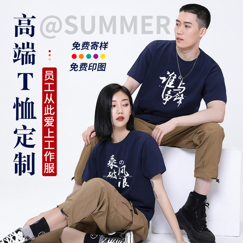 Летняя хлопковая футболка с коротким рукавом с круглым воротником для работы, делается под заказ, короткий рукав, с печатью вашего логотипа