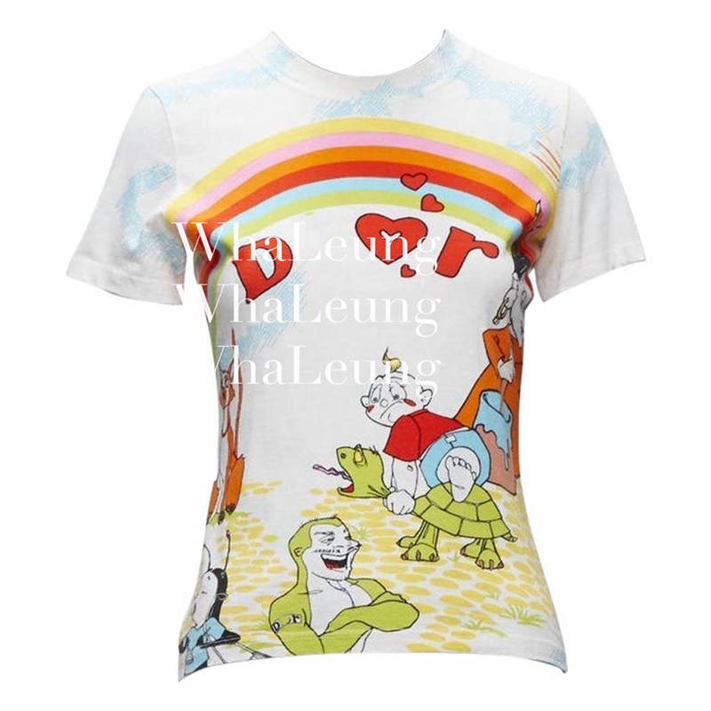 Мультяшная радужная футболка с круглым воротником, облегающий крой