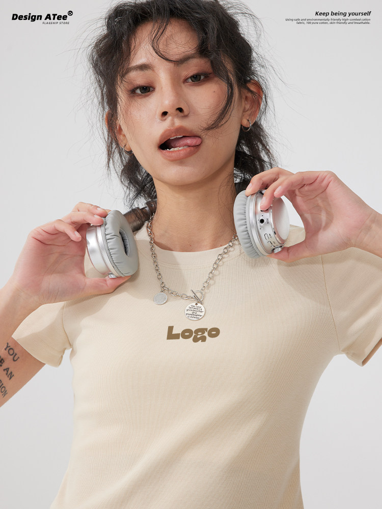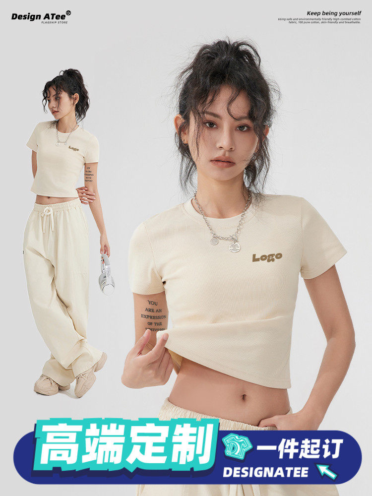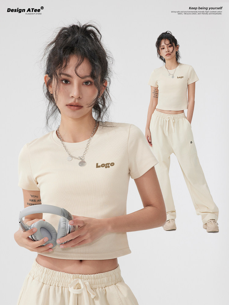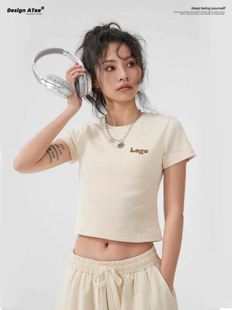 Короткая модная футболка, делается под заказ, услуга «вышивка логотипа», облегающий крой, короткий рукав