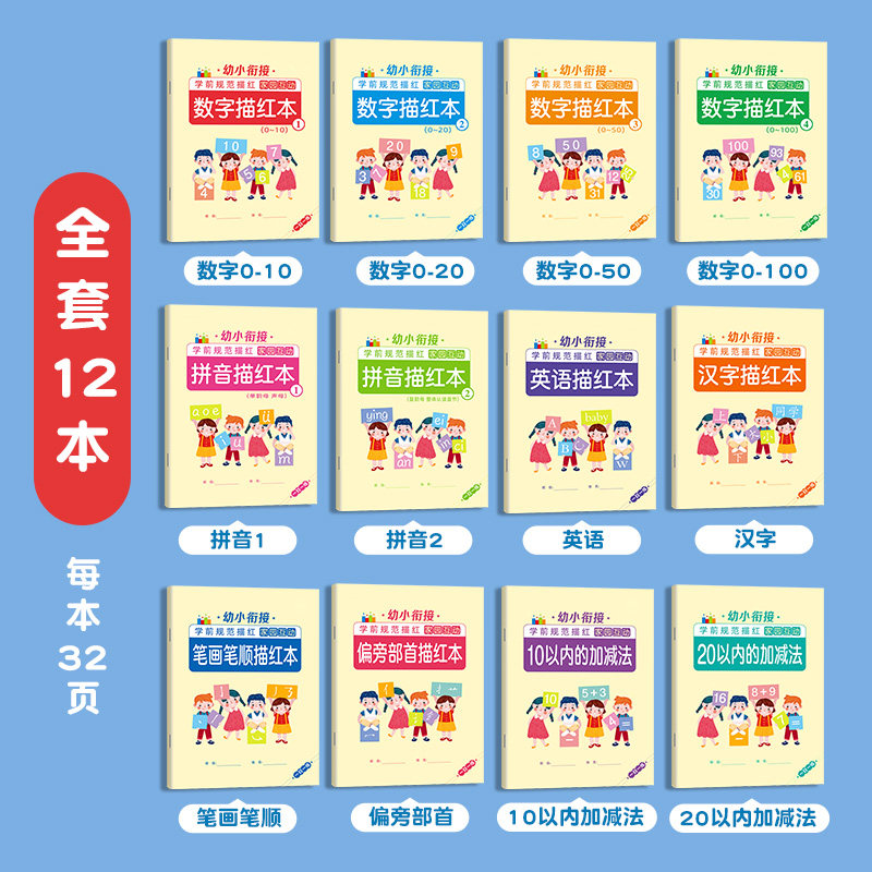 Детский сад числовой красная книга 1-10 инсультов Шунина Тиана Писания Бена-Дети-начинающие Полный набор тренировочных постов