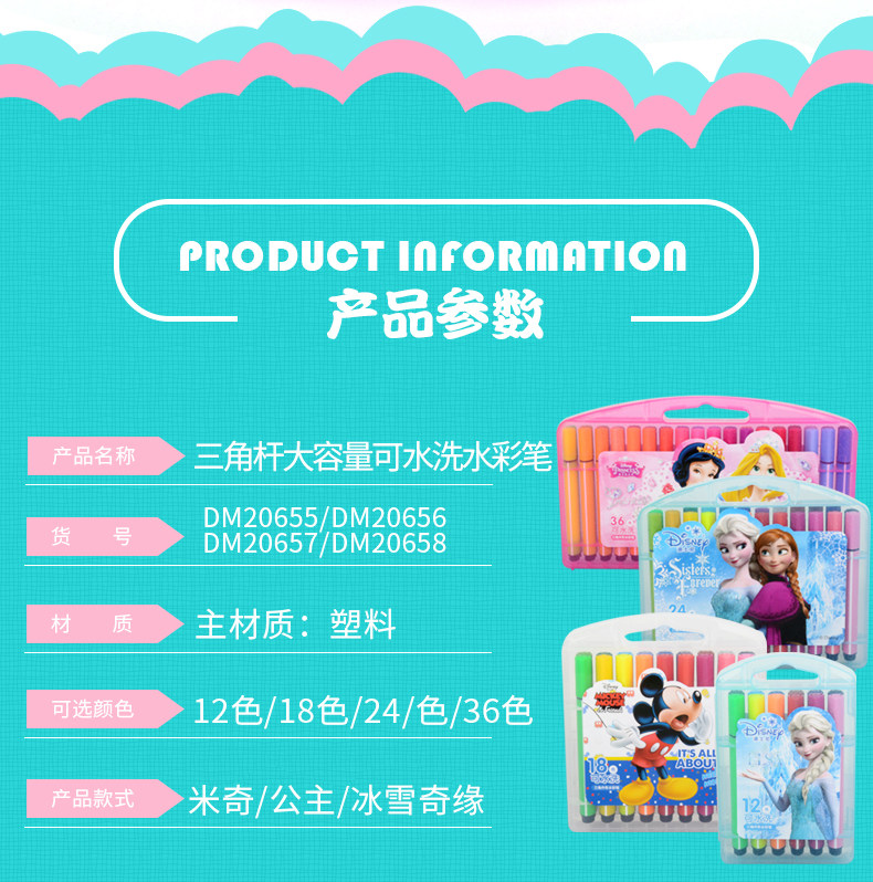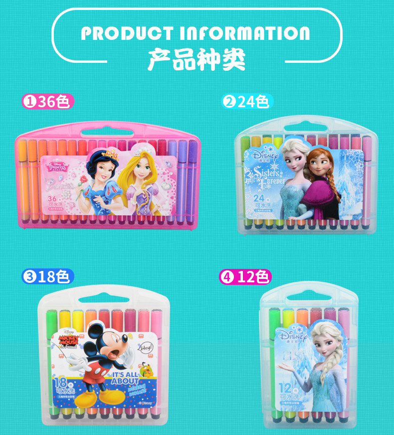 Дисней, детская кисть, комплект для детского сада, гигиеническая акварель для школьников, мелки, 36 цветов, 12 цветов, 24 цветов, можно стирать, ручная роспись