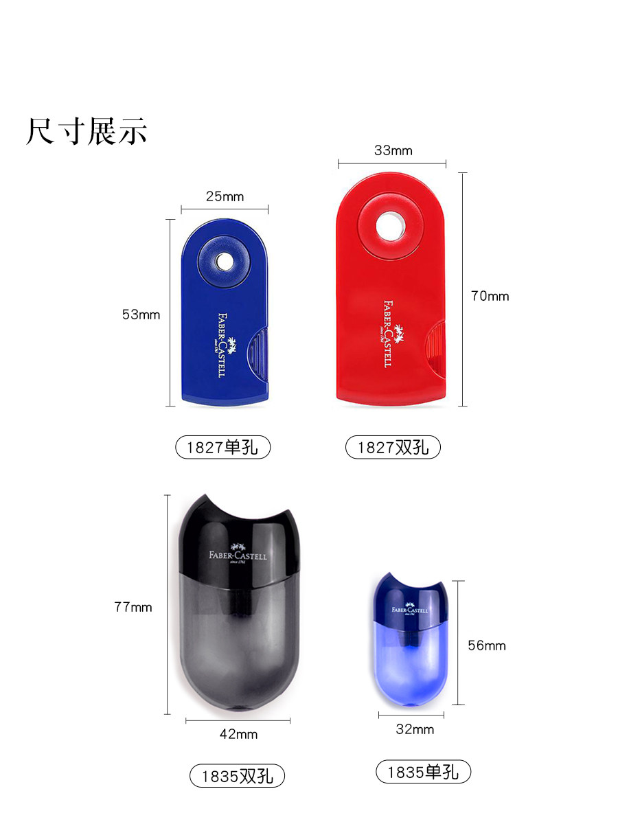 | Цвет: | Точилка для карандашей Faber-Castell 1827 с одним отверстием [1 шт./случайный цвет], Точилка для карандашей Faber-Castell 1827 с двойным отверстием [1 шт./случайный цвет], Точилка для карандашей Faber-Castell 1835 с одним отверстием [1 шт./случайный цвет], Точилка для карандашей Faber-Castell 1835 с двойным отверстием [1 шт./случайный цвет] |