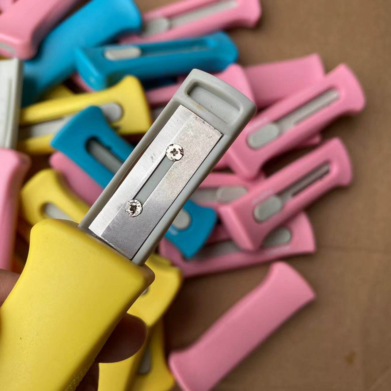 Безопасной нож Nextep Safe Cutting, созданный Sun-Star Sun Star в Японии, выиграл премию «Детский дизайн на премию японских канцелярских товаров» 2008 года.Вентилятор, желтый и синий цвет.Предотвращая конструкцию безопасности лезвия связываться с пальцами, сцепления, которая позволяет вам крепко удерживать вас, вы можете безопасно научиться разрезать карандаш и отрегулировать прочность.