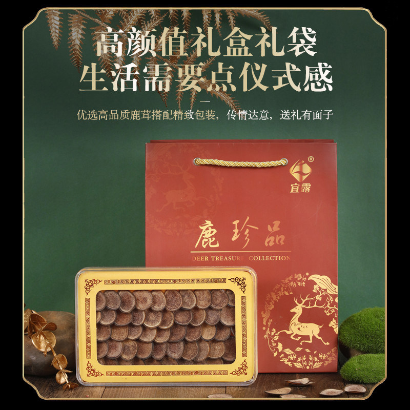 宜露 Таблетки оленьи таблетки искренний сухой оленей корень корня нарезанного нарезанного нарезанного сухого крови суп из красного порошка, суп, пузырьковое вино, подарочная коробка китайской медицины