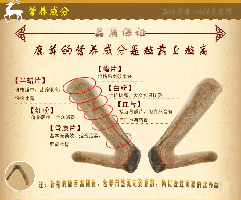 万河 Рога оленя, рога горного оленя Чанбайшань, обрезанные, первая стерня и две полоски, рога 15 юаней/г, одиночные 100-150 г