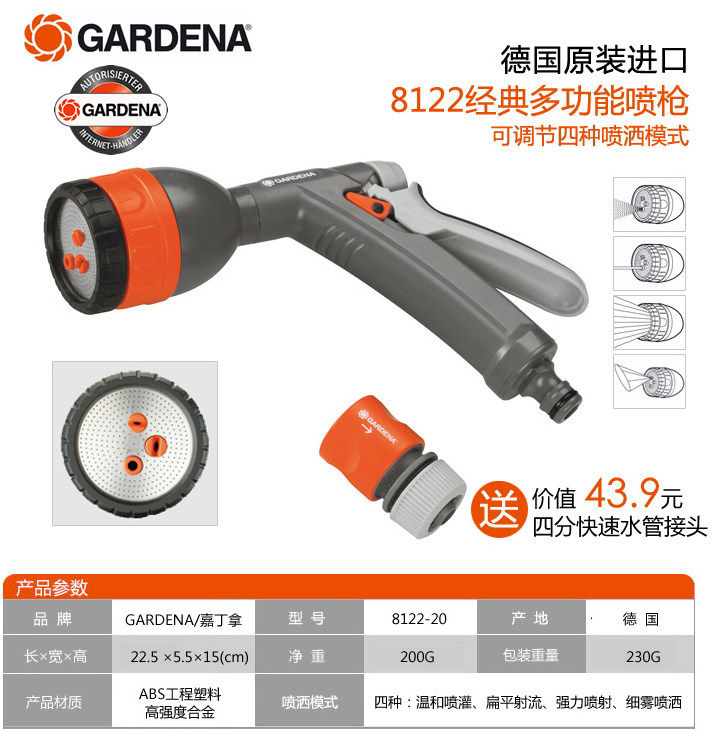 Gardena8122, Gardena 8122, Многофункциональное пистолет для водяного оружия термид 18343