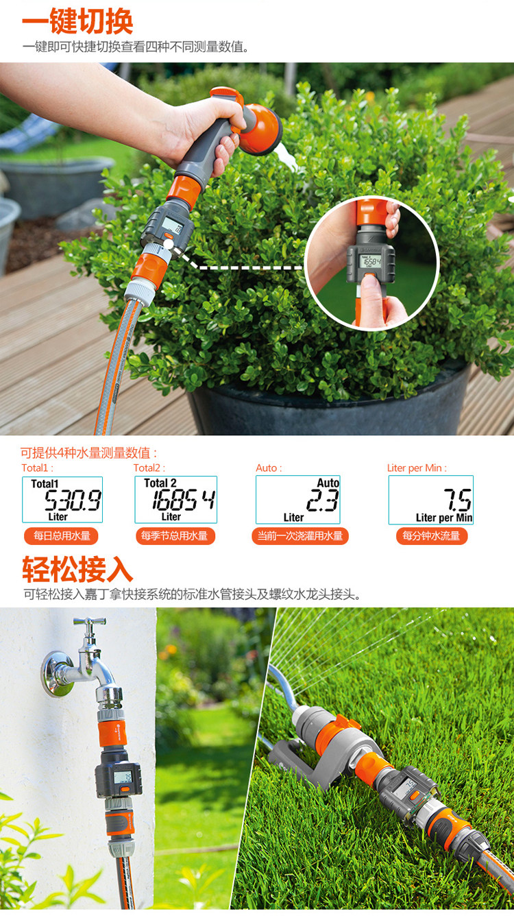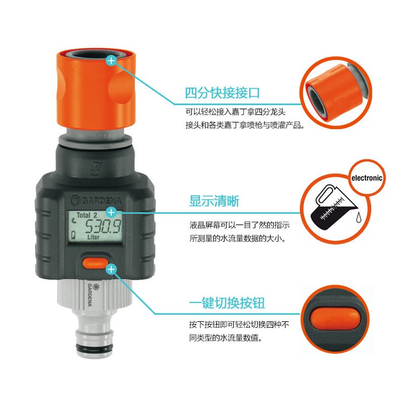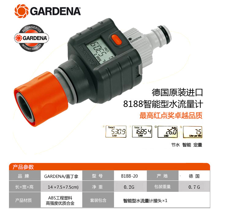 Gardena 8188 Метр транспортного средства. Проточный поток воды Проводящий дисплей свободная доставка цветов в Германии