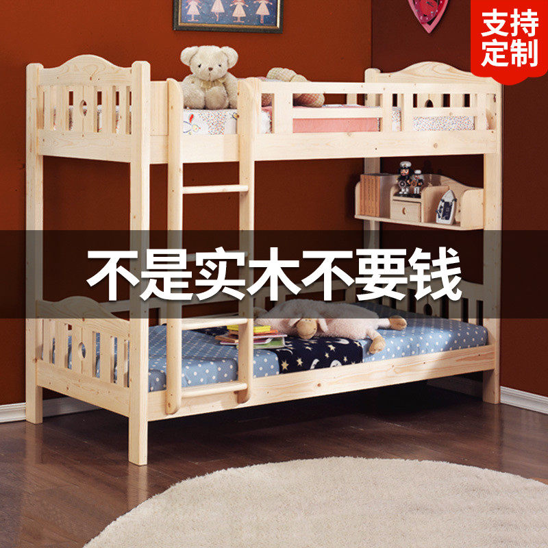 Двойная кровать с твердым деревом -кровать, кровать, кровать, кровать, кровать, детская мебель, мать и детская кровать наполовину наполовину затягивание, расколоть, расколоть