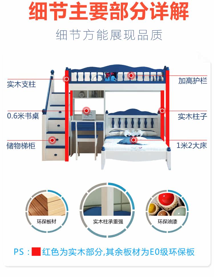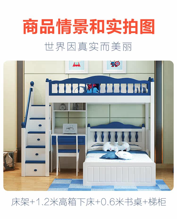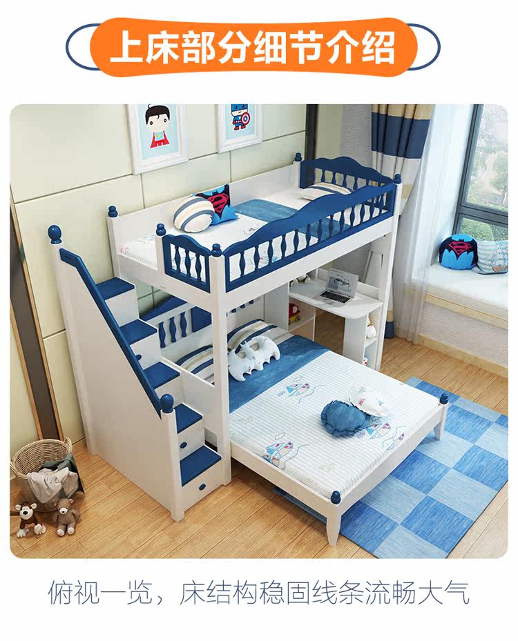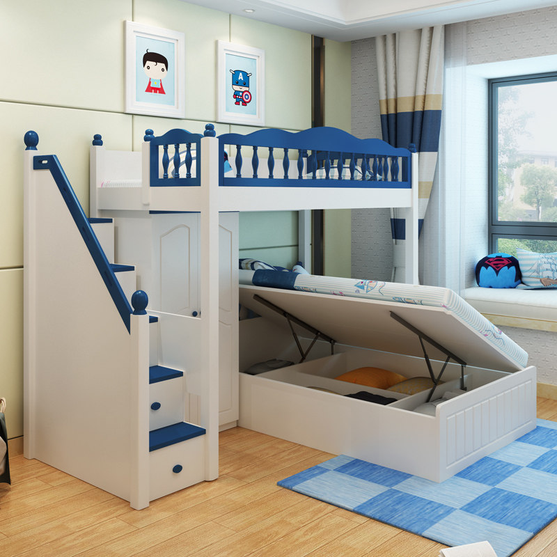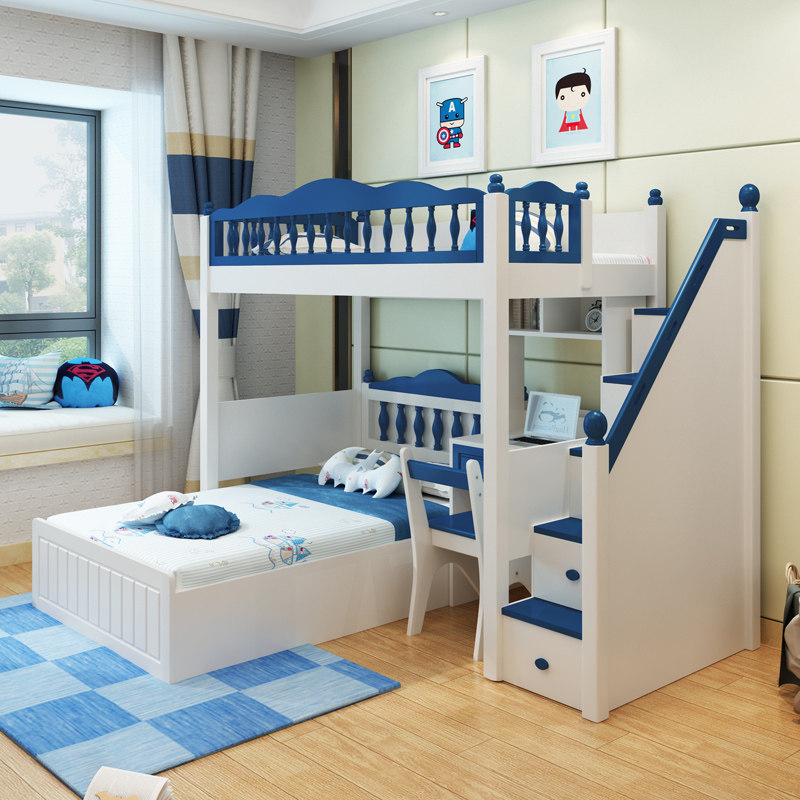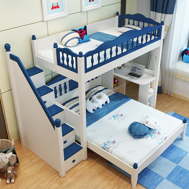 Детский кросс -кросс -мультифункциональный двойной кровать с двусрочной кроватью высотой и низкой кроватью с настольным мальчиком провинциальной провинциальной сплайсинг комбинированный кровать