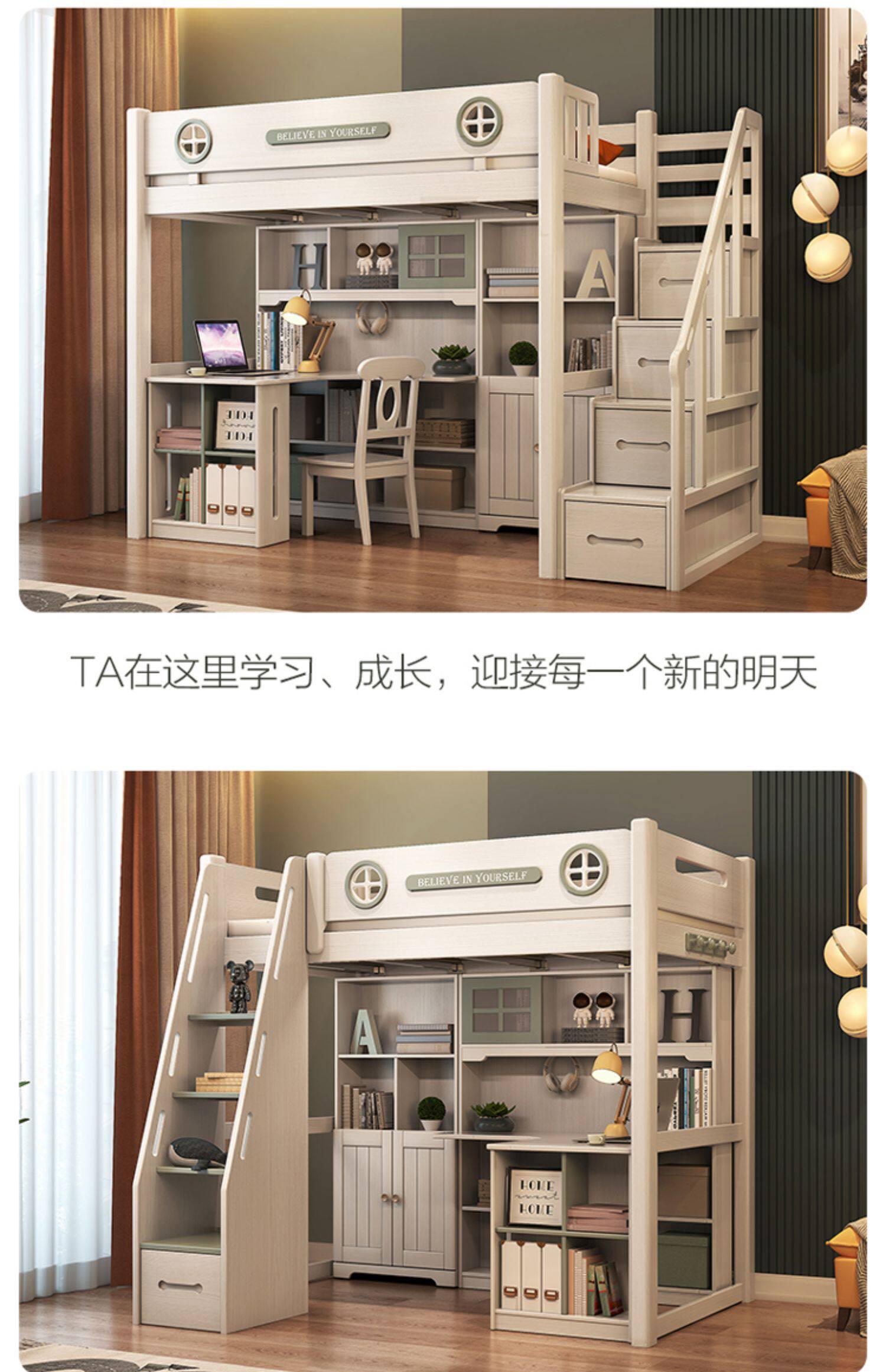 Детская кровать Quanshine, ложиться спать, мультифункциональная комбинация, ложиться спать, столик, высокая и низкая кровать с столом, кровать гардероба, сэкономьте пространство