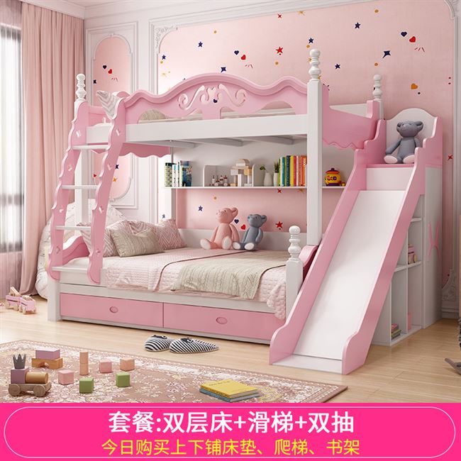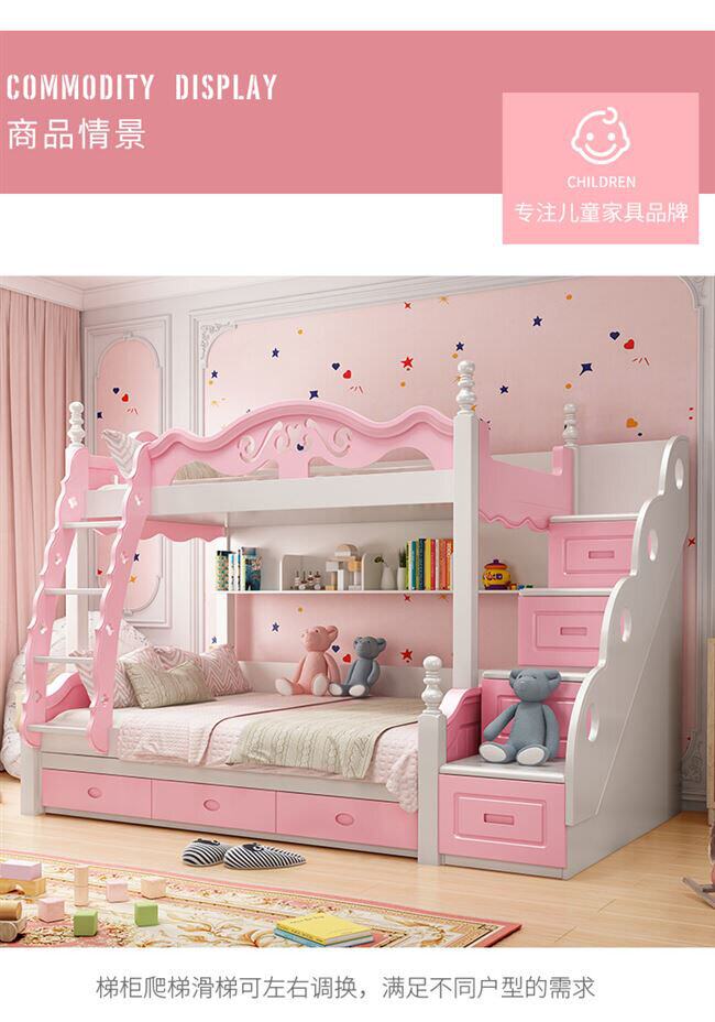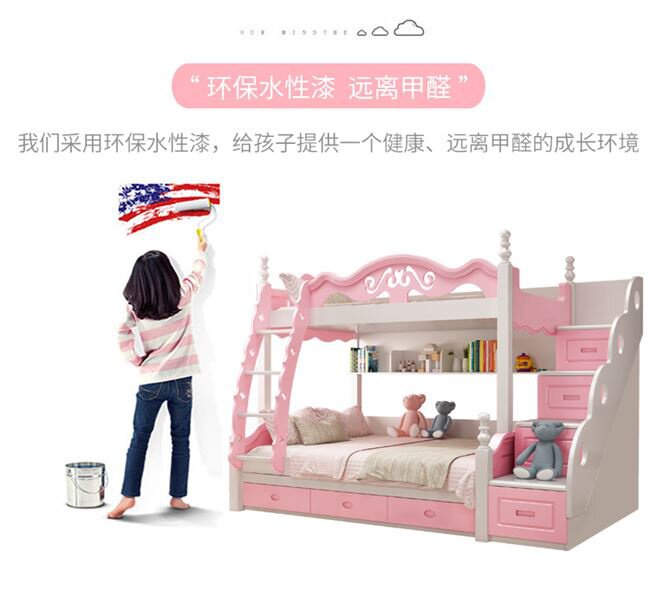 Вставай и с кровати и получение деревянной кровати с двойной кровати -кровать детская кровать Детская кровать девочки с твердой деревянной матерью и низкой кроватью с двумя слоями Кэти