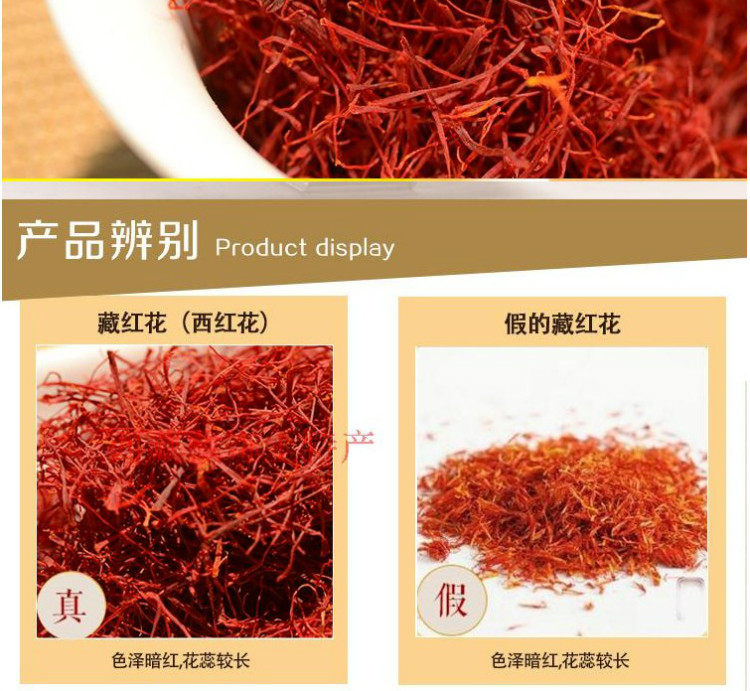 ШафранТакже известный как Crocus, это сухое стигма многолетнего растения Crocus семейства Ирис. В нашей стране есть лишь небольшое количество выращивания, а цветы-сине-фиолетовый или пурпурный красный, с особым ароматом.Он сладкий и холодный по своей природе и имеет сходное влияние на шафран, но имеет более сильный эффект.Кроме того, шафран также обладает последствиями охлаждения крови и снятия депрессии и часто используется для таких симптомов, как депрессия, депрессия, сердцебиение и безумие.