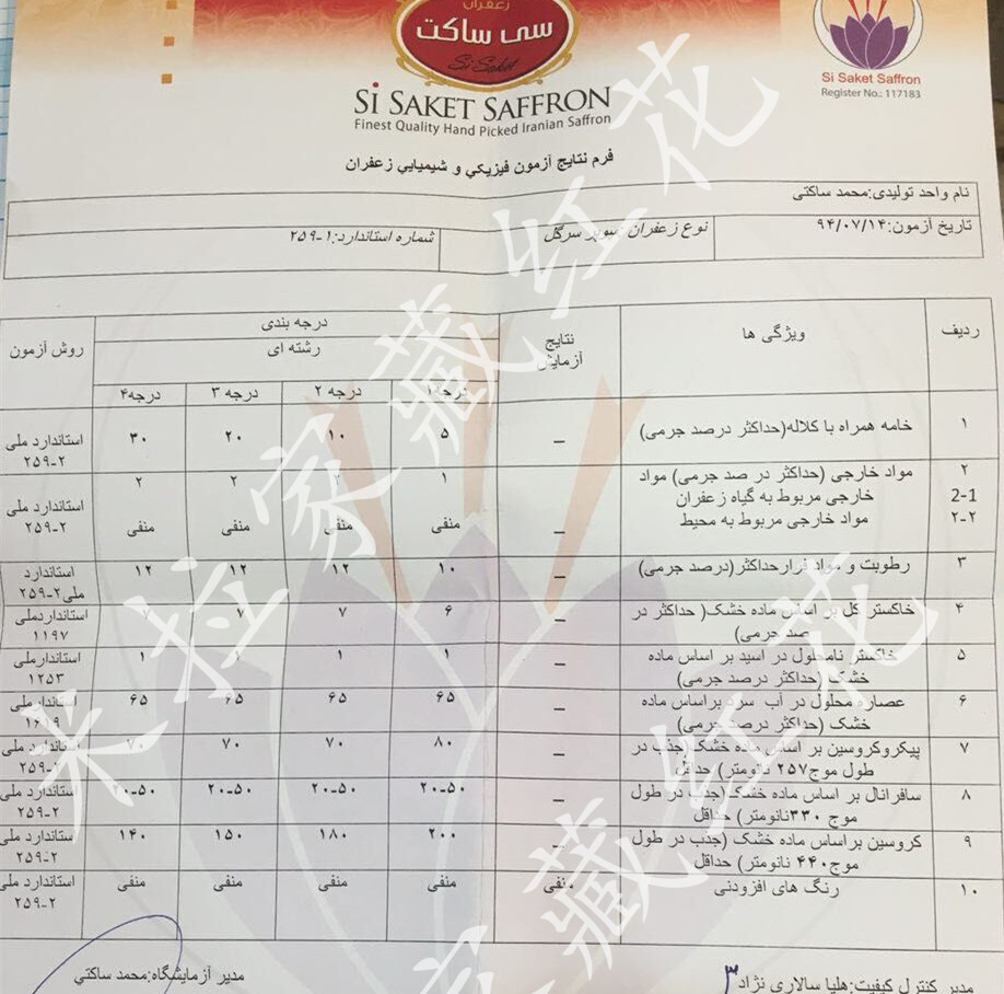 Сертификат тестирования (каждый должен распознать эти сертификаты при покупке шафрана)