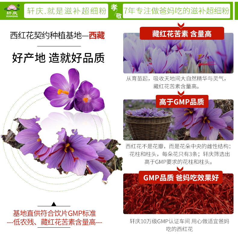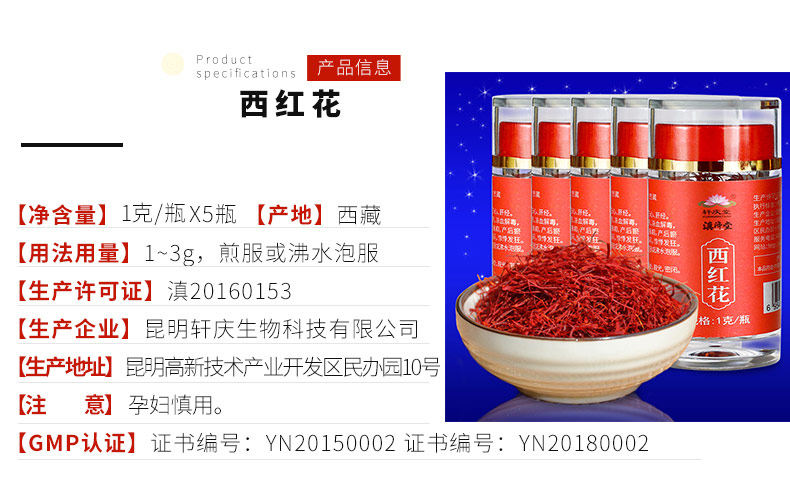 轩庆 Боковой шафран 5G Тибетский специализированный западный красный цветок не -ранский тибетский тибетский тибетский лысый цветок чай не специфический xq