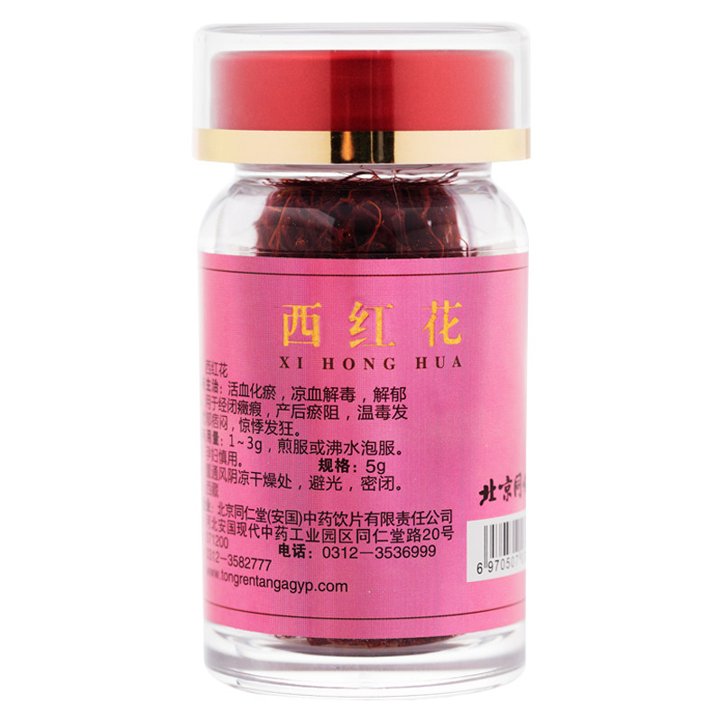 同仁堂 Западный красный цветок 5 г/бутылка шафранового тибетского тибетского чая Zang Honghua, красный цветок красный цветок замочите воду, чтобы выпить чай здоровья