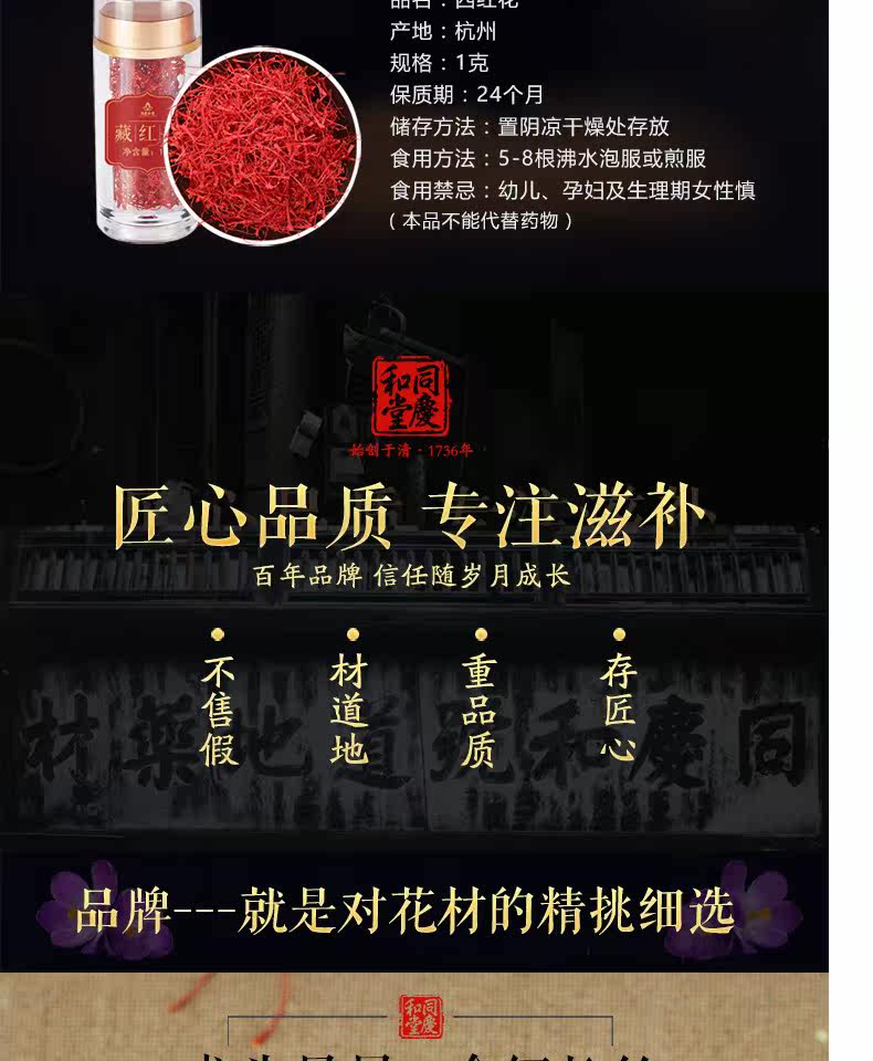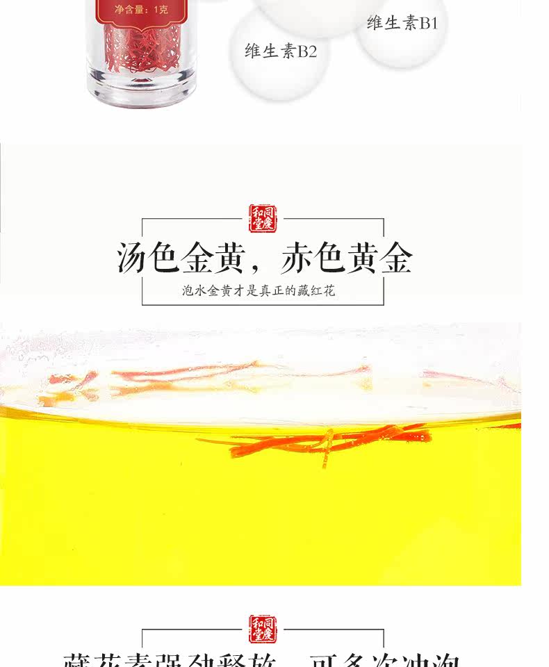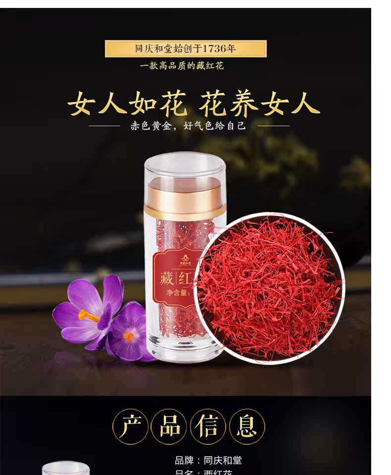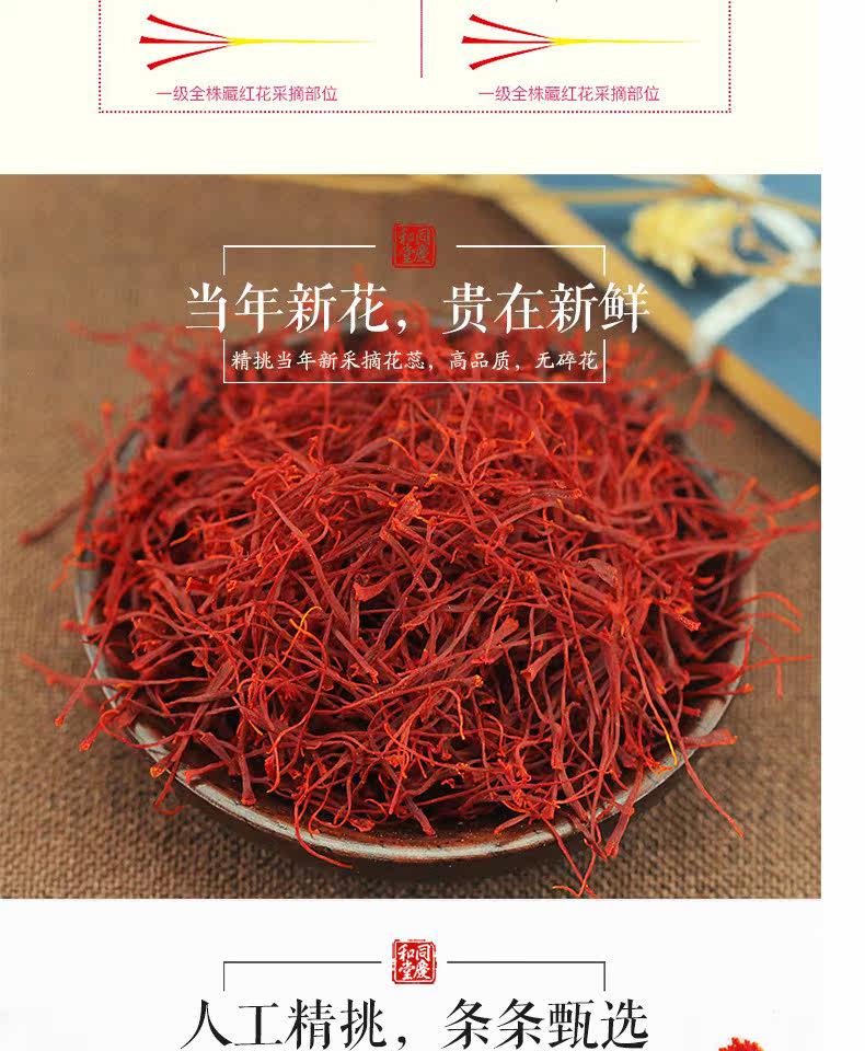 同庆和堂 Тибетский шафран подлинный специальный -разглашайте иранские иранские красные цветы тибетские дикие импортированные подлинные подлинные вода для выпивки 1 грамм/бутылка