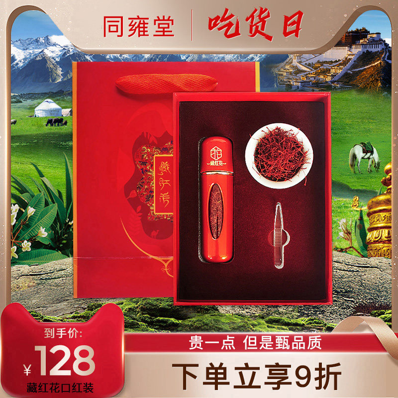 [Качество тибета] Тибетский шафран Специальный тибет иранский шафран 3 грамма подарочной коробки Загрузка красных цветов, пропитанных водой