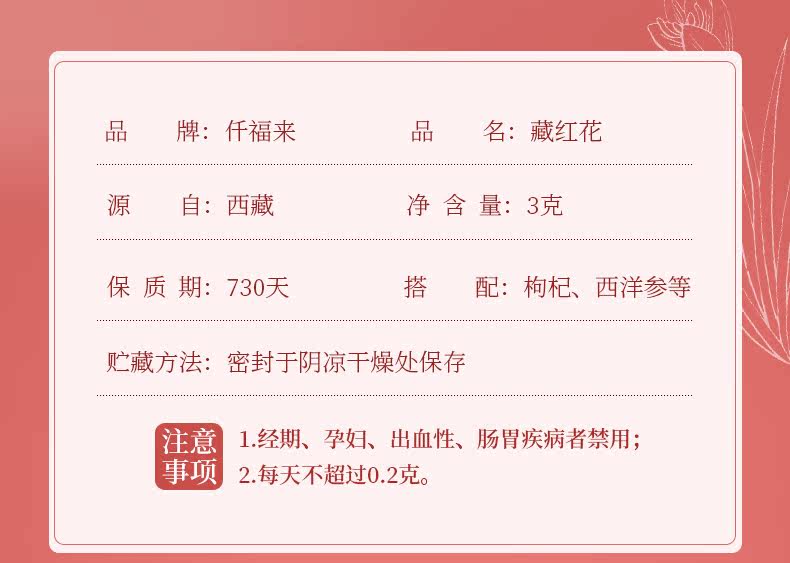 Купить 1 волосы и 2 бутылки] Qianfu Lai Hidden Red Flower 3 грамма/горшок с вымоченными водяными напитками Zang Honghua Non -Iranian West Red Flow